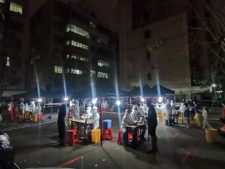 闻令而动。3月31日晚8时,医院接到区委区政府疫情防控任务指示,曾小芬院长第一时间向全院发出号令,一声令下,医院工作群便出现火热报名的一幕,“我报名”、“我有空”“我可以去”、“我现在过去”......在曾小芬院长的统一指挥、协调下,仅用30分钟时间便火速集结了30名医务人员,赶往琼山区龙瀛康居,迅速投入战斗与病毒赛跑,4月2日一早,再次赶赴龙瀛康居封控区,入户上门采样。