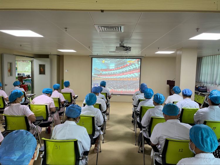 2022年10月16日上午10:00,琼山区妇幼保健院组织党员干部职工收听收看中国共产党第二十次全国代表大会开幕会,院领导班子成员、各党支部党员、团员、各部门(科室)主任、护士长合计40余人在医院多功能厅集中观看,值守医务人员则结合实际情况利用休息间隙用手机观看。大家聚精会神、目不转睛地观看直播,认真聆听习近平总书记在中国共产党第二十次全国代表大会上的报告。