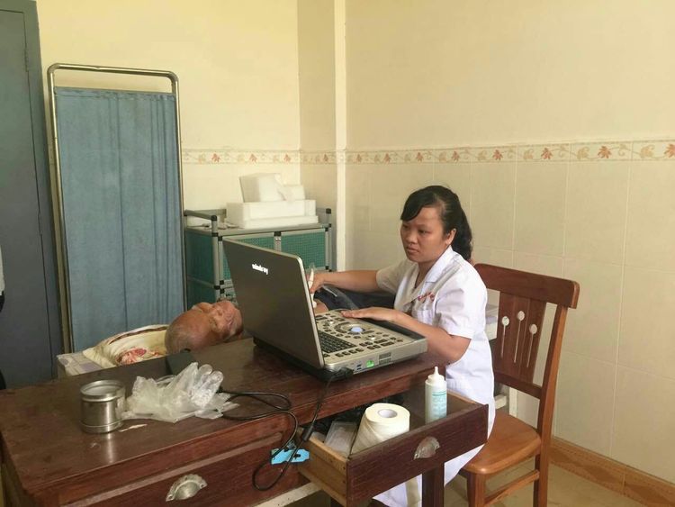 超声医师为当地群众免费做超声检查